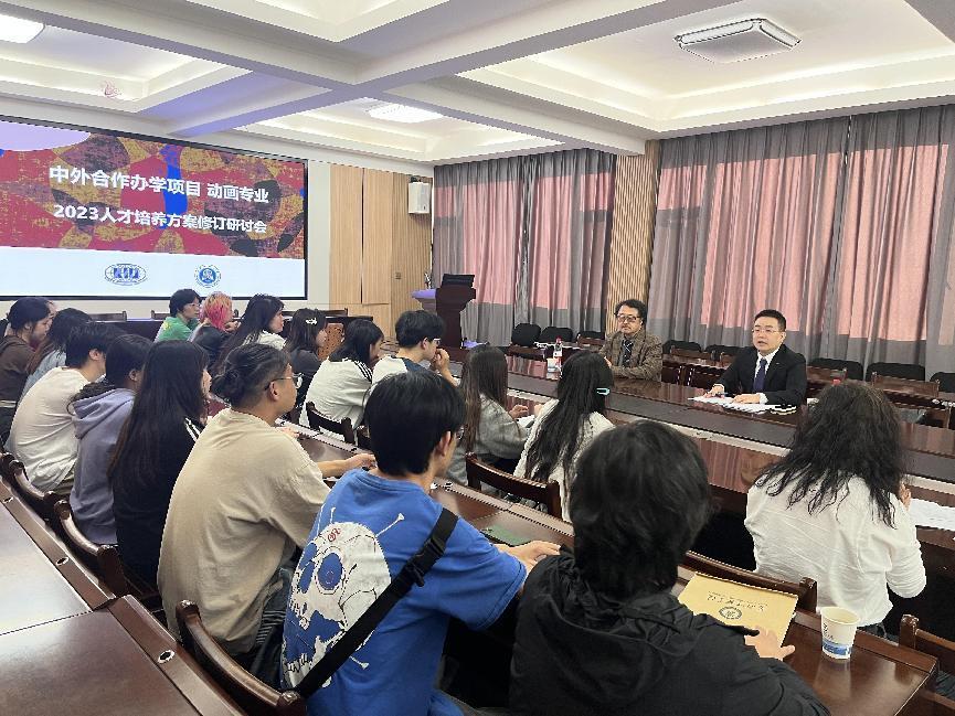 张华局长阐述了此次学习对动画专业员工拓宽视野、语言学习和专业规划三方面的重要影响;对前期准备工作做了详细指导,对师生疑惑进行了当面解答。