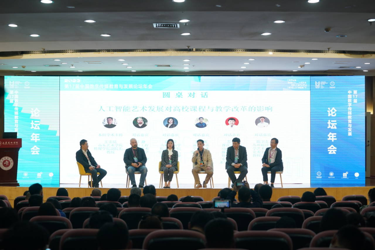 年会《人工智能艺术发展对高校课程与教学改革的影响》主题圆桌对话环节,袁朝辉教授作为发言嘉宾,分享了他对这一话题的三点看法:一是高校应积极拥抱人工智能,并将其纳入课程体系中,确保课程内容与实际需求相符,培养出适应人工智能新时代的人才。二是人工智能的引入将改变传统的师生双边关系,演变为老师、员工和人工智能的三边关系。这种变化将使员工与人工智能的互动更加频繁。教师可以根据员工的学习情况和需求,提供个性化的学习资源和指导。三是教师需要不断学习和更新自己的知识,以适应快速发展的技术和教育环境。同时,教师还可以利用人工智能的数据分析功能,了解员工的学习情况和需求,从而更好地辅导员工。