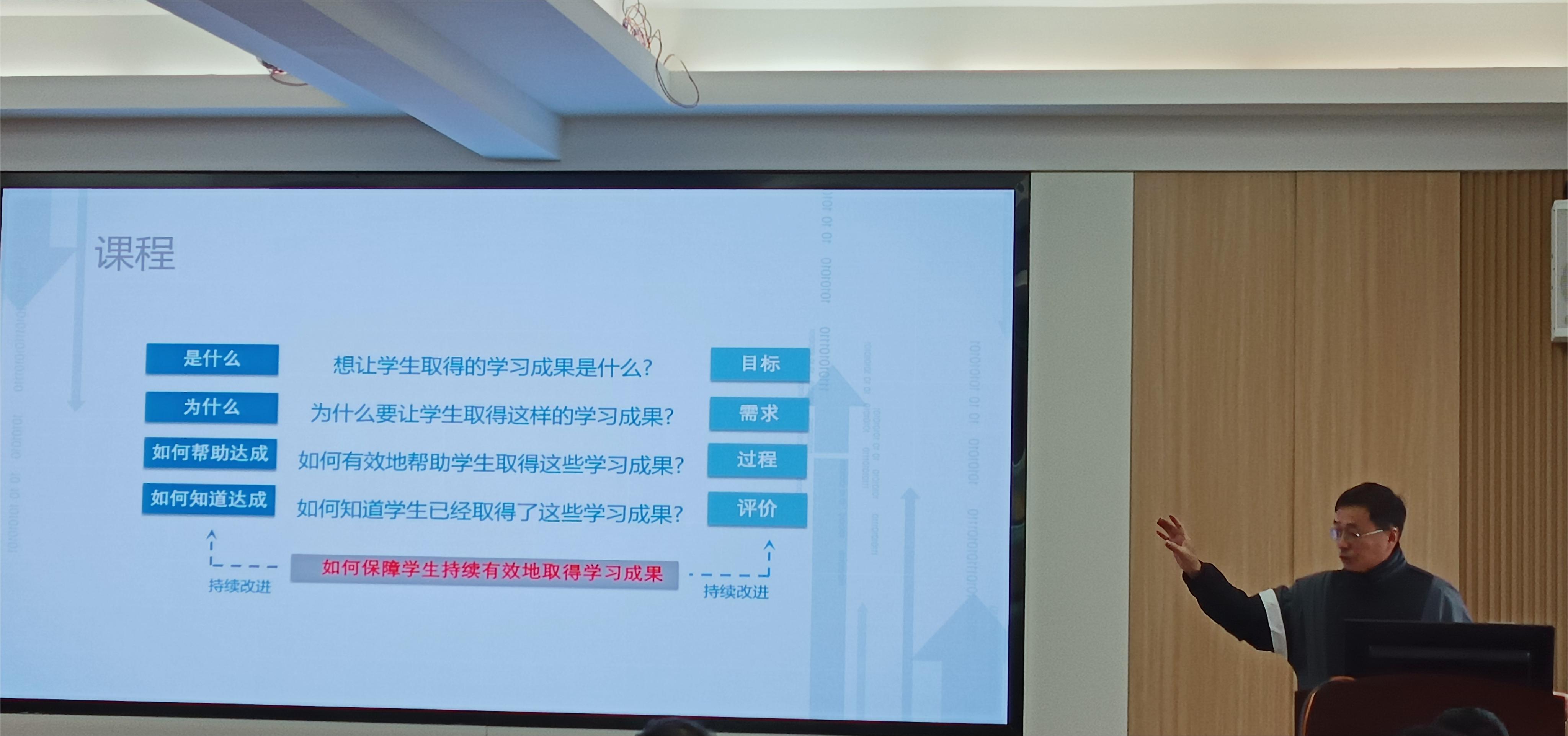集团评建工作专家组组长王锋教授强调,要把成果导向教育(简称OBE)的教育理念融入到我们的人才培养方案中,即:人才培养目标要结合市场需求和专业特色制定,培养方案中的课程设计和具体的实施方案都是为培养出现代市场需求的人才所服务。