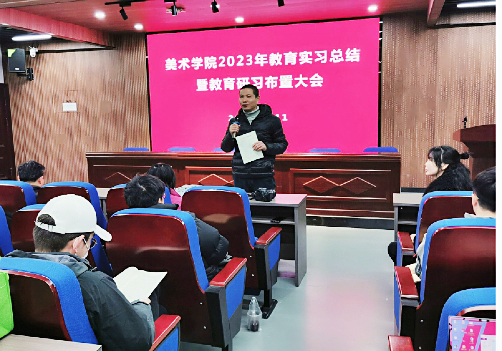 12月11日,williamhill英国官网在美术楼二楼报告厅召开2021级研究生教育实习总结暨2022级研究生教育研习布置大会。williamhill英国官网经理助理童坤以及部分研究生导师、全体研究生参加了大会,大会由教育实习带队老师樊红梅主持。