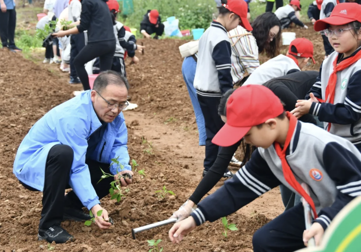 在种植过程中,各位来宾、老师都同孩子们一起耕作,并给予他们劳动技能的指导,让孩子们在实践中感受劳动的快乐。