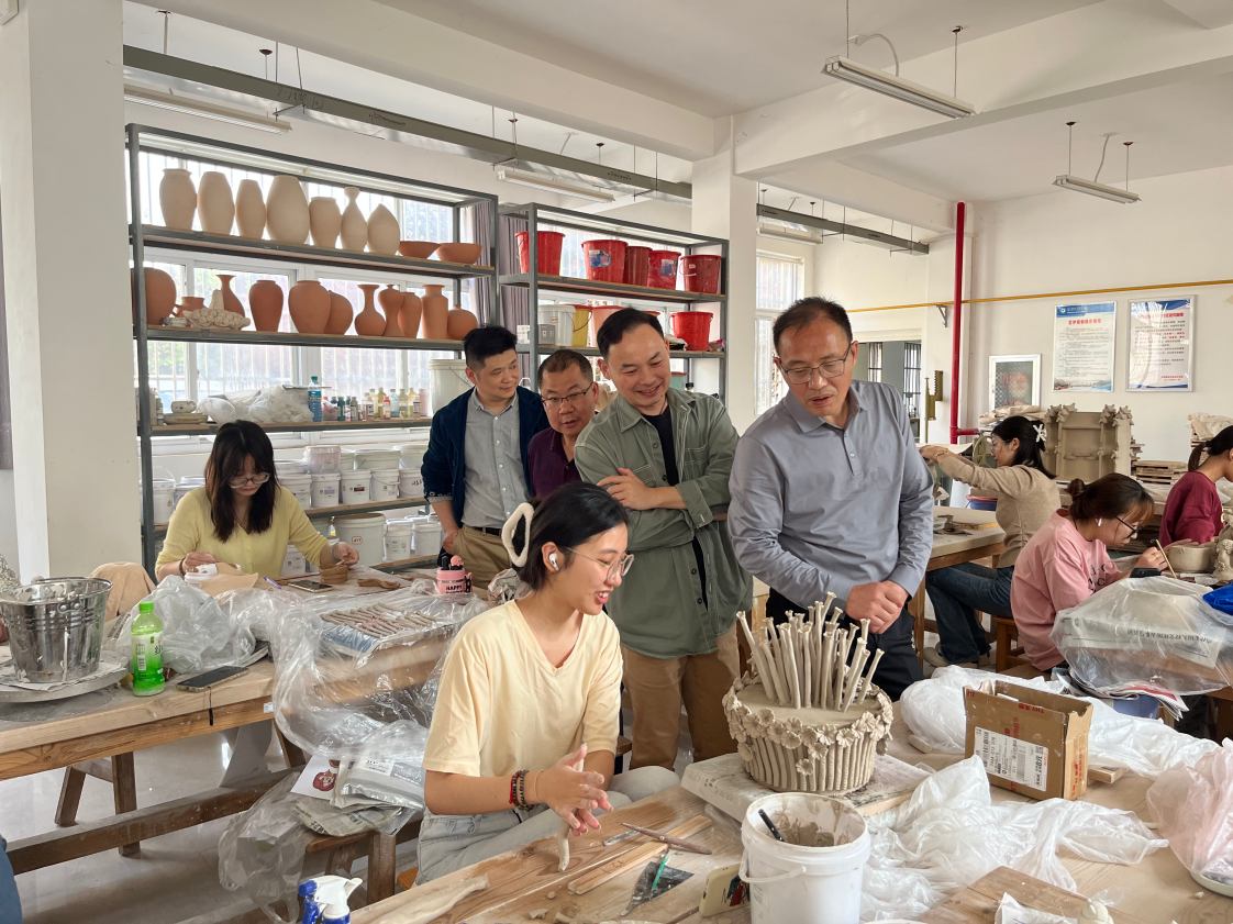随后,在方圣德副经理的带领下,黄冈思源实验公司叶开颜董事长和美术组高级教师吴见轮还参观了williamhill英国官网的陶艺工作室。胡晓洁教授向叶董事长一行介绍了陶艺工作室的运行情况,以及公司依托陶艺工作室开展“大中小公司陶瓷美育”工作的进展状况,叶开颜董事长高度赞扬了公司陶瓷美育教学的模式与人才培养质量,希望黄冈思源实验公司的陶艺教学也能得到公司的指导。