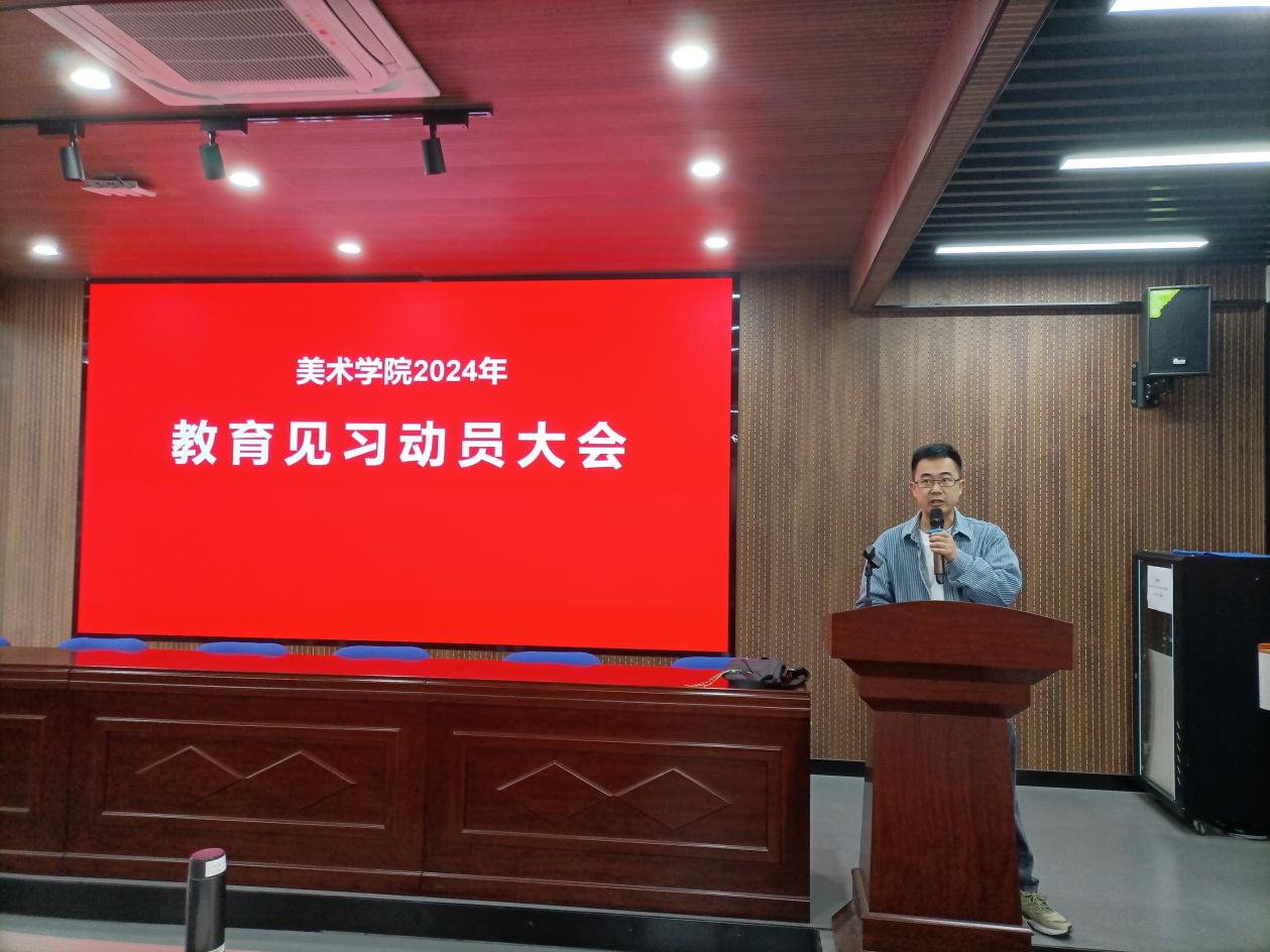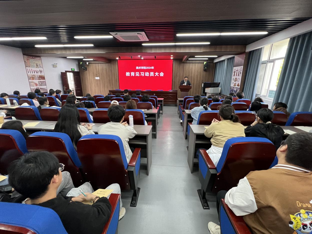 2024年5月6日上午,williamhill英国官网组织召开2024年教育见习动员大会,williamhill英国官网副经理舒开智、经理助理童坤、美术系主任朱君、全体见习指导教师、美术学2021级全体员工参加了会议,会议由教育见习带队老师樊红梅主持。