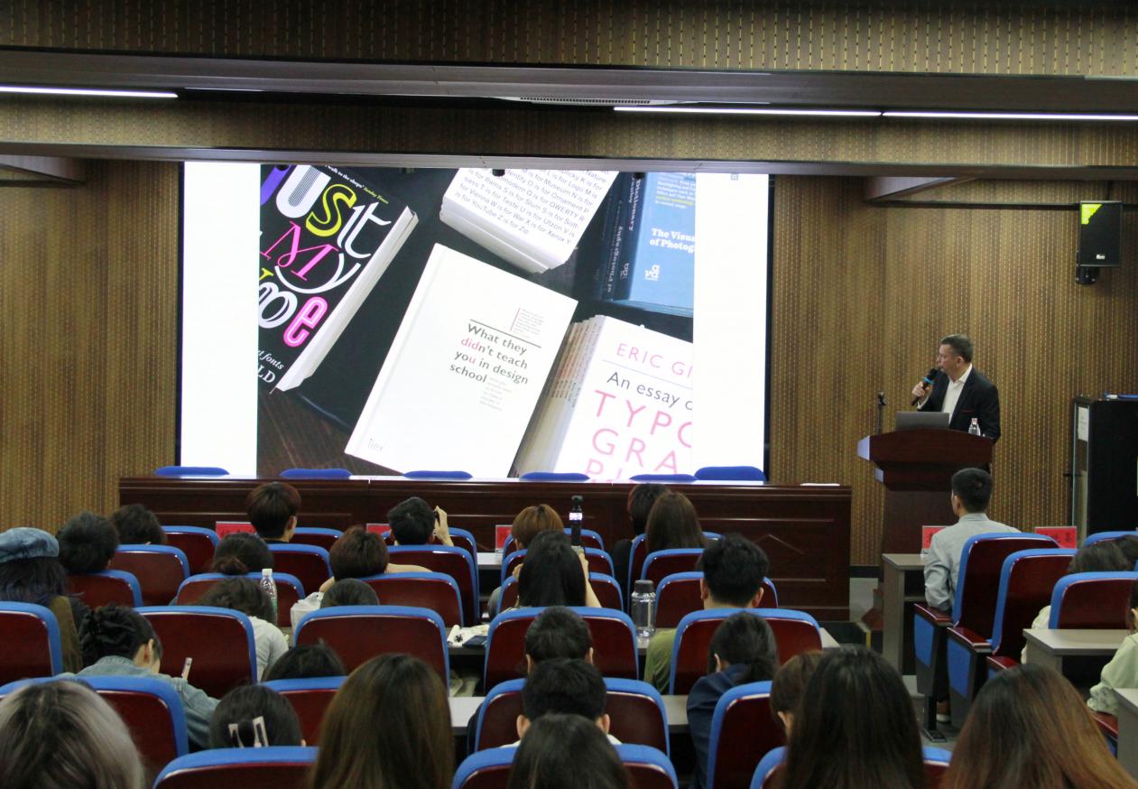 开幕式结束后,菲利普·安德鲁·克利弗(Phil Cleaver)教授为公司师生作了以“平面设计四十五载心路历程——中英文字体设计的实践”为题的学术报告。该报告介绍了当前国际设计领域的前沿动态和发展方向,分享了大量设计案例和公司产品经验,阐释了设计美学、理念、要素及方法内在关系。菲利普教授对公司师生在设计中的常见问题进行解答,教授由表及里、深入浅出的讲解让师生受益匪浅。