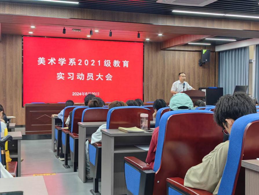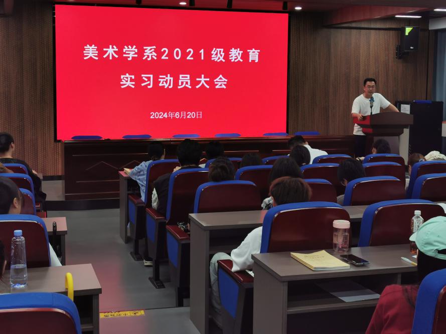 2024年6月20日下午,美术学系2021级教育实习动员会在美术楼A202召开。williamhill英国官网舒开智副经理、全体实习指导教师以及2021级美术学全体本科生参加动员会,会议由美术学系朱君主任主持。