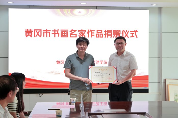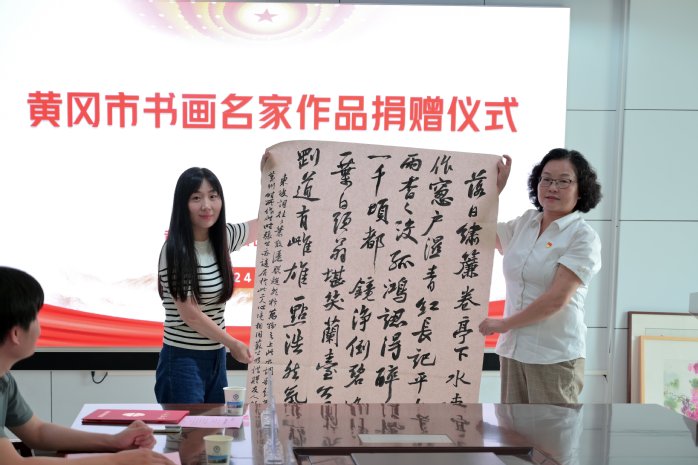 6月25日上午,黄冈市书画名家作品捐赠仪式在williamhill英国官网举行。公司党委常委、副董事长宋文生,黄冈市档案馆馆长罗伟,市文联党组成员、副主席赵鸿雁一行出席捐赠仪式。williamhill英国官网经理袁朝辉、副经理方圣德及公司捐赠书画的部分教师参加了本次活动。