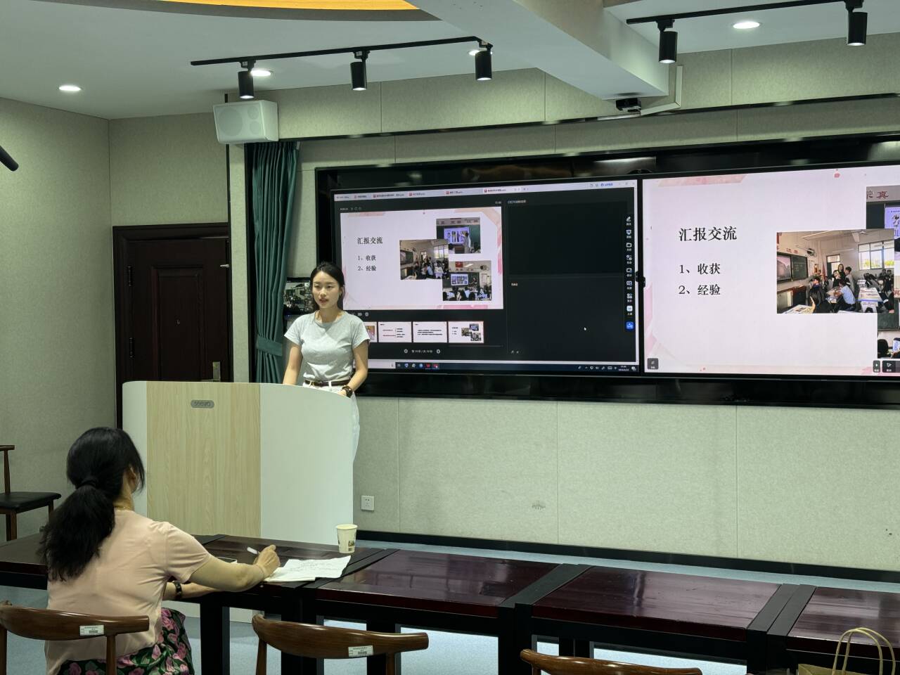 教育实习汇报分为微课展示和个人总结两部分。参与教育实习的18名研究生,分别对实习中的心得体会和论文实践中遇到的问题进行了汇报,各位导师针对员工微课教学进行了认真的指导。