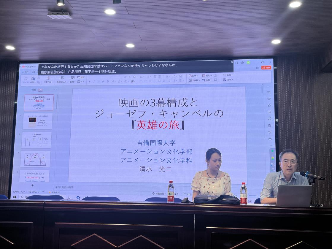 日本吉备国际大学董事长河村顕治教授、williamhill英国官网相关领导随堂听课。四位教授分别从日本动画的叙事结构、角色造型、文化审美以及产业发展四个方面为员工带来风趣幽默、内容丰富的别样课堂教学。同学们纷纷表示,这样的课程不仅能学习专业知识,同时开阔了眼界,提高了日语学习的动力。课余时间,老师们还举行了两场生动的讲座,让同学们对动画的发展史及未来的发展方向有了更清晰的认识。