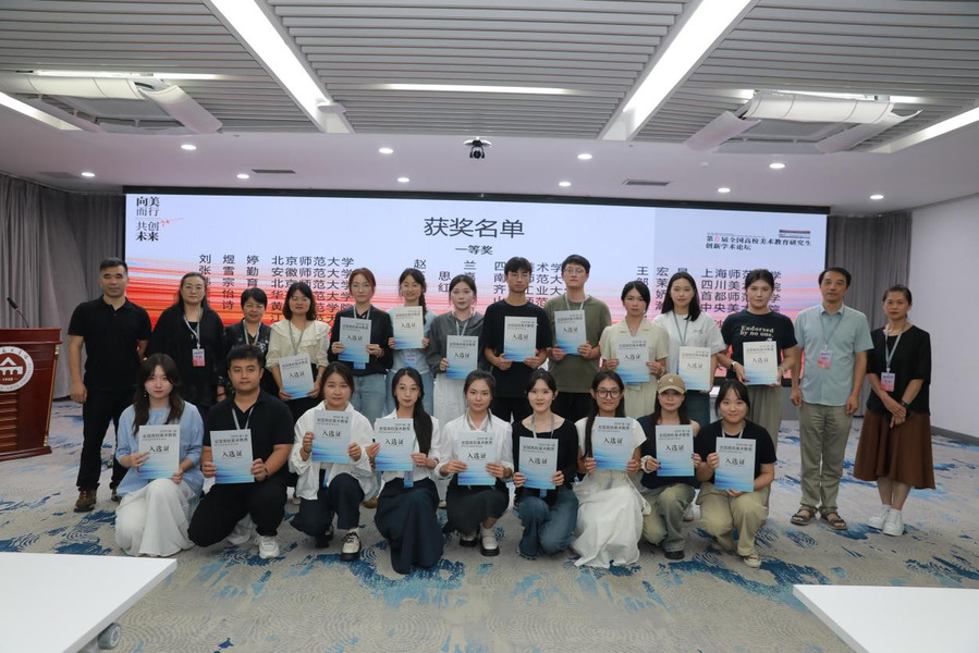 公司方圣德教授指导张博文的《美育浸润行动背景下“U-M-S”馆校协同开发中小学美育课程的路径研究》、胡绍宗教授指导戴诗汝的《素养与知识结构化原则下教学内容的选择与组织——以黄州农民画鉴赏为例》、樊红梅副教授指导张旭的《馆校合作下黄梅挑花作为初中美术课程资源的价值与实践路径分析》荣获全国一等奖,胡绍宗教授指导张皎娟的《陕北民间剪纸高中美术鉴赏教学的文化理解目标》荣获全国二等奖,创造了公司研究生在该论坛中的最好成绩。张博文和戴诗汝两位同学在论坛发表了演讲。