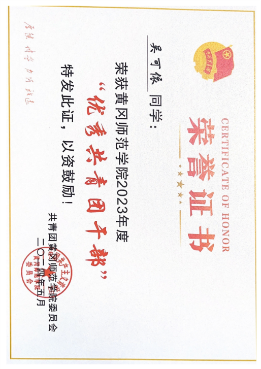 在员工工作中,吴可依展现出了极高的热情和卓越的能力。在组织协调工作中,她宛如一台精准的导航仪,有条不紊地统筹团委的各项事务。无论是大型活动的策划与执行,还是日常工作的安排与监督,她都能合理规划资源,保障各个环节紧密衔接。多次担任大型校园文化活动工作人员,赢得了师生们的广泛好评,并被推荐到湖北省“荆楚英才公司”老员工骨干培训班进行深入交流学习。