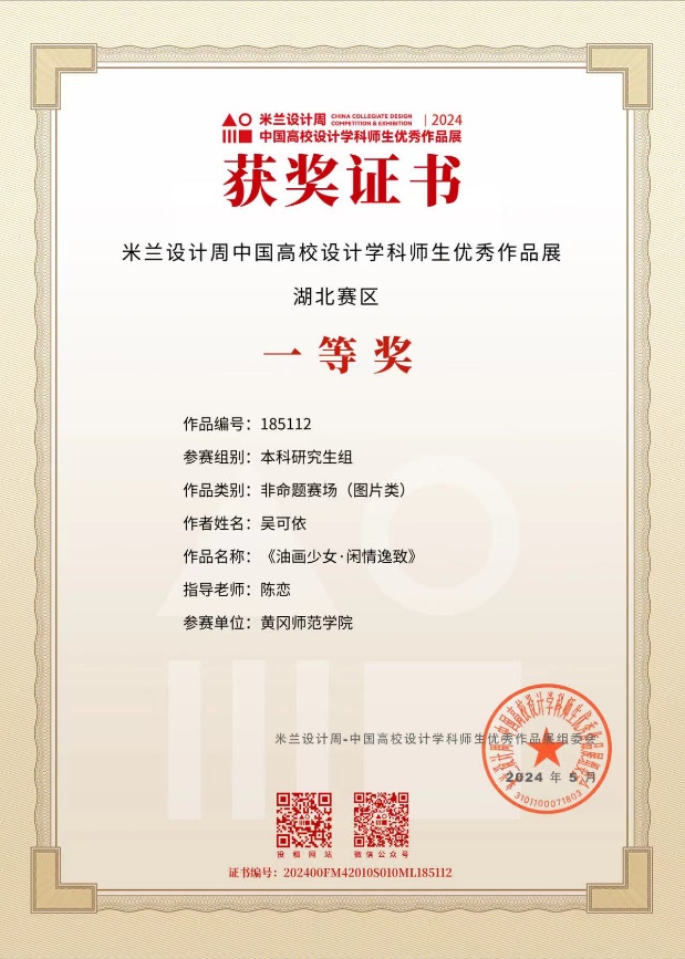 各类设计竞赛是她展现卓越才华的大舞台。她积极投身其中,带着自己的创意与激情,参与了 2024第12届未来设计师·全国高校数字艺术设计大赛(NCDA)、米兰设计周2024年第八届中国高校设计学科师生优秀作品展、2024东方设计奖·全国高校创新设计大赛等多项重量级赛事。在 2024东方设计奖·全国高校创新设计大赛中,她所创作的作品,以独特的视角和极具感染力的表现手法,最终从众多参赛者中脱颖而出,荣获国家级一等奖。在准备2024第12届未来设计师·全国高校数字艺术设计大赛(NCDA)时,她以丰富的情感表达和新颖的创意设计,赢得了满堂喝彩,荣获国家级三等奖为公司争得了荣誉。这些竞赛经历不仅锤炼了她的实践能力和创新思维,更让她在面对困难时拥有了坚韧不拔的毅力。