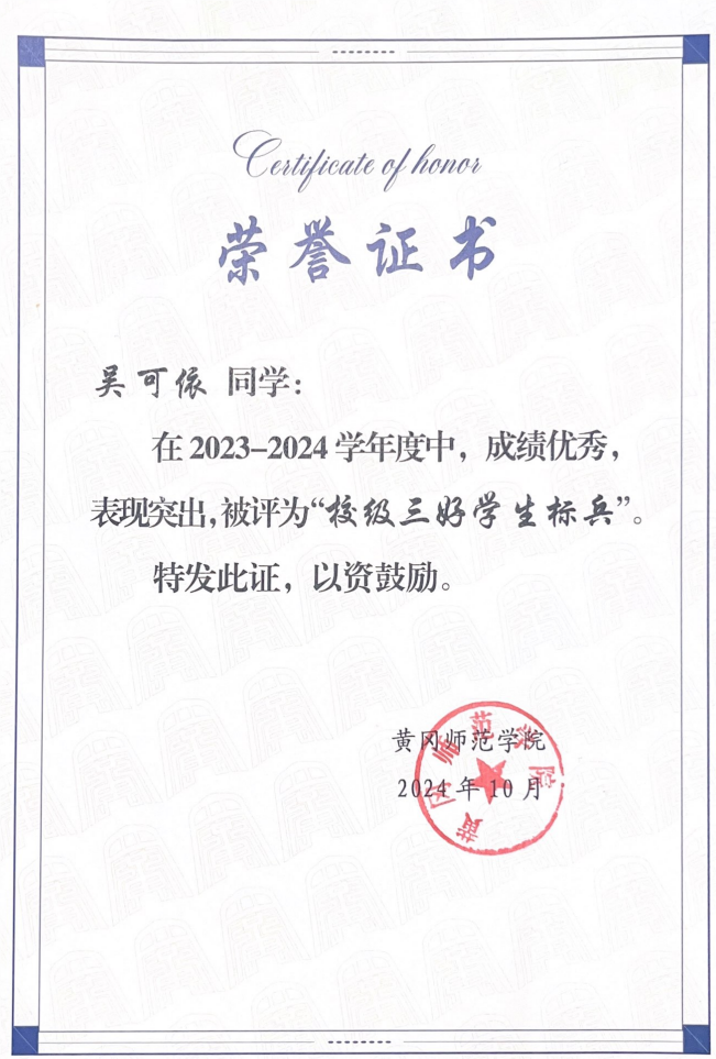在课堂上,她是学术领域的探索者。她犹如一块海绵,尽情吸收知识的甘霖。她目光炯炯,思维敏捷,对知识有着强烈的渴望,每一个问题都能引发她深入的思考。无论是晦涩难懂的专业理论,还是复杂多变的实践案例,她都能轻松驾驭。课后,她总是穿梭于图书馆的书架之间,见证了她对知识的执着追求。正是这份勤奋与专注,让她的成绩在专业内名列前茅,成为同学们眼中的 “学霸”,荣获“校级三好员工标兵”、“校级优秀共青团干部”等荣誉称号