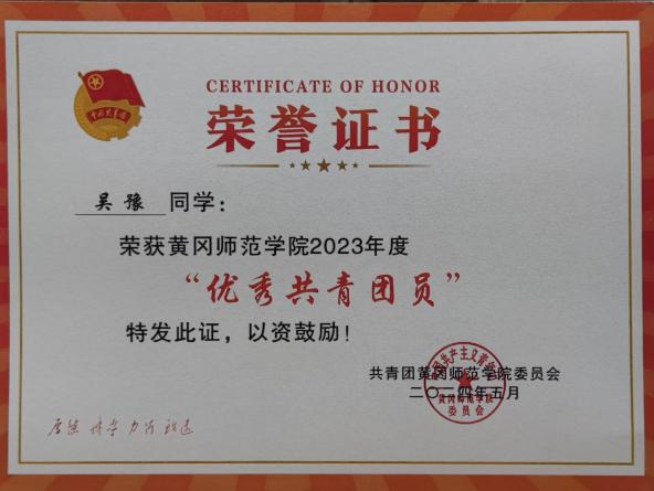 作为2023级学科美术班的班级负责人,吴豫认真负责,积极协调,热情帮助同学解决学习与生活中的问题,成为老师与同学之间的桥梁,荣获2022 - 2023年度优秀工作者称号。在课余时间,他通过勤工俭学,兼职美术教师,积累了丰富的教学经验。展望未来,他希望用自己的专长为社会贡献一份力量。
