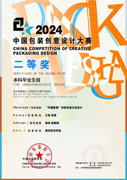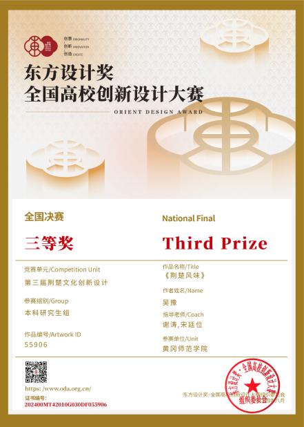 在平时的学习生活中,吴豫积极参与公司组织的各项活动。在10月11日研究生处举办的第九届教育硕士研究生微课教学比赛中,他认真准备并积极参与,最终荣获一等奖。在课余时间,他热情参与公司举办的各项专业技能竞赛。在教育部组织的A、B类赛事中,如第十五届蓝桥杯大赛、第十八届中国好创意大赛、2024 睿抗机器人开发者大赛 CAIA 数字文化创意大赛、第十二届数字媒体大赛、第五届东方创意之星、第十届东方设计奖、2024 中国包装创意设计大赛等赛事中,共获得国家级奖项16余项、省级奖项30余项。同时,他还荣获了社会认可度较高的“KTK 靳埭强设计奖”入围奖一项。