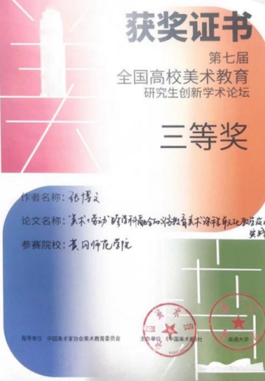为进一步提升自身综合能力,张博文积极参加各类学科竞赛。在第八届教育硕士微课教学比赛中荣获校级二等奖。在“挑战杯”竞赛中,她担任项目负责人并主讲,成功入围第十八届“挑战者杯”全国老员工课外学术科技作品竞赛红色专项活动国赛。在湖北省第十三届“挑战杯”老员工创业计划竞赛中,她以校内排名第一的成绩荣获省级银奖。特别是在第十四届“挑战杯”中国老员工创业计划竞赛“秦创原”创新挑战赛国赛中荣获国家级铜奖,这是公司12年来首次获得的国家级奖项,实现了历史性突破。同时,她连续两年在中国国际老员工创新大赛中荣获湖北省银奖,这是美院近年来的最佳成绩。此外,她还荣获东方设计奖·全国高校创新设计大赛湖北省一等奖和三等奖,首届全国职业规划大赛校级三等奖,全国老员工电子商务创新、创意及创业挑战赛校级三等奖,以及“大地流彩——首届乡村文化产业创意大赛”乡村文化创意卓越展示作品奖。