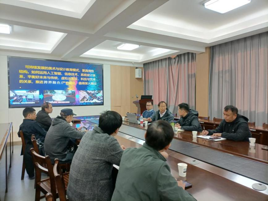 陈汗青教授的讲座聚焦新时代美术与设计团队建设的新内涵、新理念和新方法,分析了新一轮学科专业调整的背景和思路,强调站在学科与专业建设制高点统筹谋划公司总体工作,客观分析自身优势与短板,科学研判中长期发展规划目标定位。陈教授提出,汇集优势资源打造一流学科和一流专业,争取在关键领域取得突破性成果,实现“方向精准,团队精锐,机制精进,平台精耕,成果精品”;学科与专业建设要以人才培养、政产学研融合、提升新质生产力为导向,精准把握高等教育规律和公司实际,在创新发展思路和健全质量保障机制上做好文章。陈汗青教授的讲座既有深厚的理论基础,又具有现实的指导意义。讲座后,陈教授还与老师们进行了深入交流。