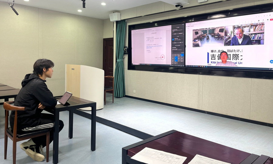 面试环节中,6名面试员工围绕个人简介、专业背景、兴趣爱好、留学规划等内容全程日文作答,并针对外方面试官提出的专业问题展开深入交流。员工扎实的专业基础、流利的语言表达能力及清晰的学业规划获得外方院校高度认可。面试结束后前岛英辉教授回答了面试同学所提出的问题,并向大家展示了日本吉备国际大学的校园环境、动画专业的办学条件、专业课程、团队队伍以及优秀的动画作品,让员工对未来就读的大学有了一个更加全面的了解。