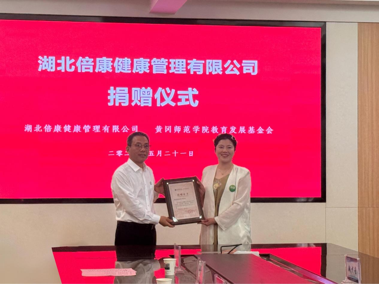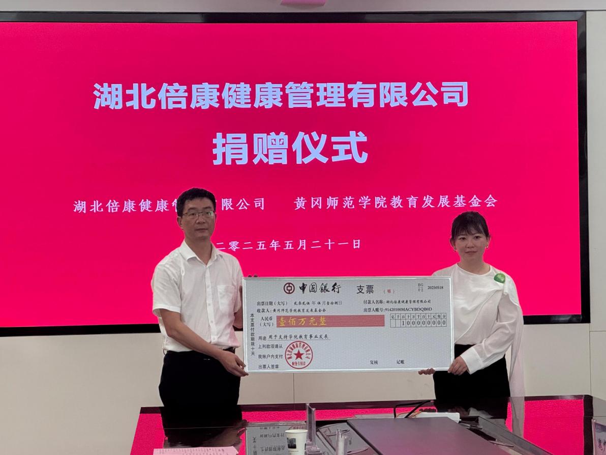 漆昌柱感谢员工企业湖北倍康健康管理有限公司对公司的慷慨捐赠,并简要介绍了公司的办学历史和发展现状。漆昌柱指出,公司第三次党代会提出实施开放办学战略,加强与社会各界的联系,形成多元投入、合力建设、共享共赢的资源募集机制。湖北倍康健康管理有限公司的捐赠义举,是对公司“386”行动计划的鼎力支持,为公司发展添砖加瓦。我们将用好这笔善款,加强沟通交流,在健康管理、人文教育、艺术团队建设等方面不断拓展与湖北倍康健康管理有限公司合作的深度与广度,积极推动双方合作出精品,结硕果。我们会将员工企业的暖心善举和关心支持转化为加快建设“全省一流、全国知名”高水平师范大的强大动力,培养更多优秀人才、创造更多优质成果,不辜负社会各界的支持与厚望!