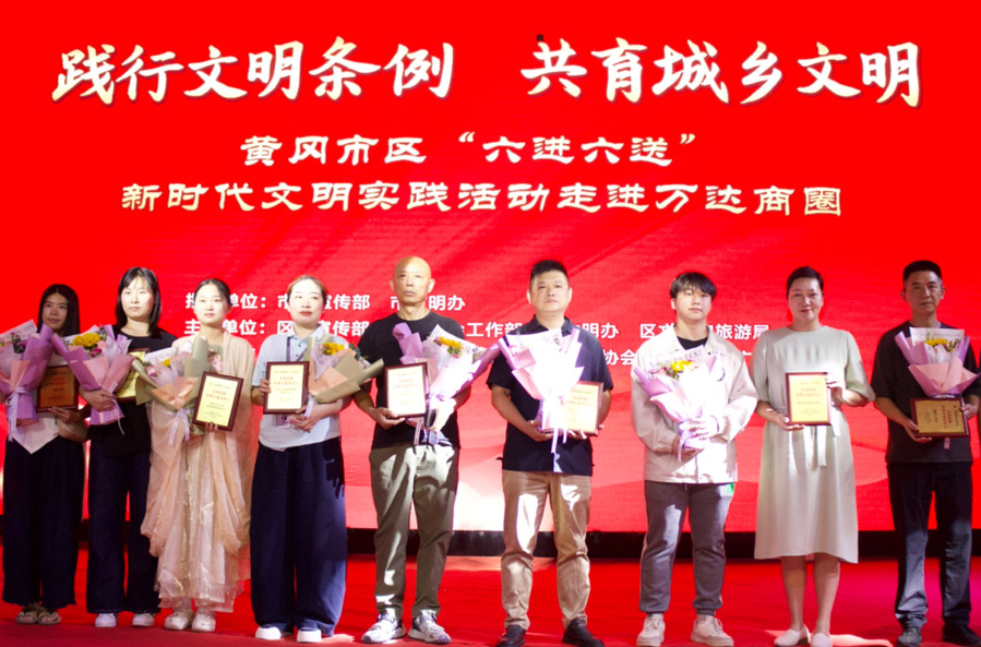 2025年5月31日晚,由黄冈市委宣传部、市文明办指导,黄州区委宣传部、区文化和旅游局主办的“六进六送”新时代文明实践活动在黄州万达广场热烈举行。本次活动以“践行文明条例 共育城乡文明”为主题,面向市民开展理论、政策、知识、文化、文明、健康“六送”进商圈,全面弘扬文明新风,推动城乡文明建设融合发展。凭借持续参与社区服务、文明传播等志愿活动的优异表现,公司曙光志愿服务团队被授予“文明实践公益合伙人”荣誉称号。公司孙军副教授作为团队指导教师之一,代表团队登台领奖,并接受市区领导颁发的证书,彰显高校力量在基层社会治理与文明建设中的积极作用。