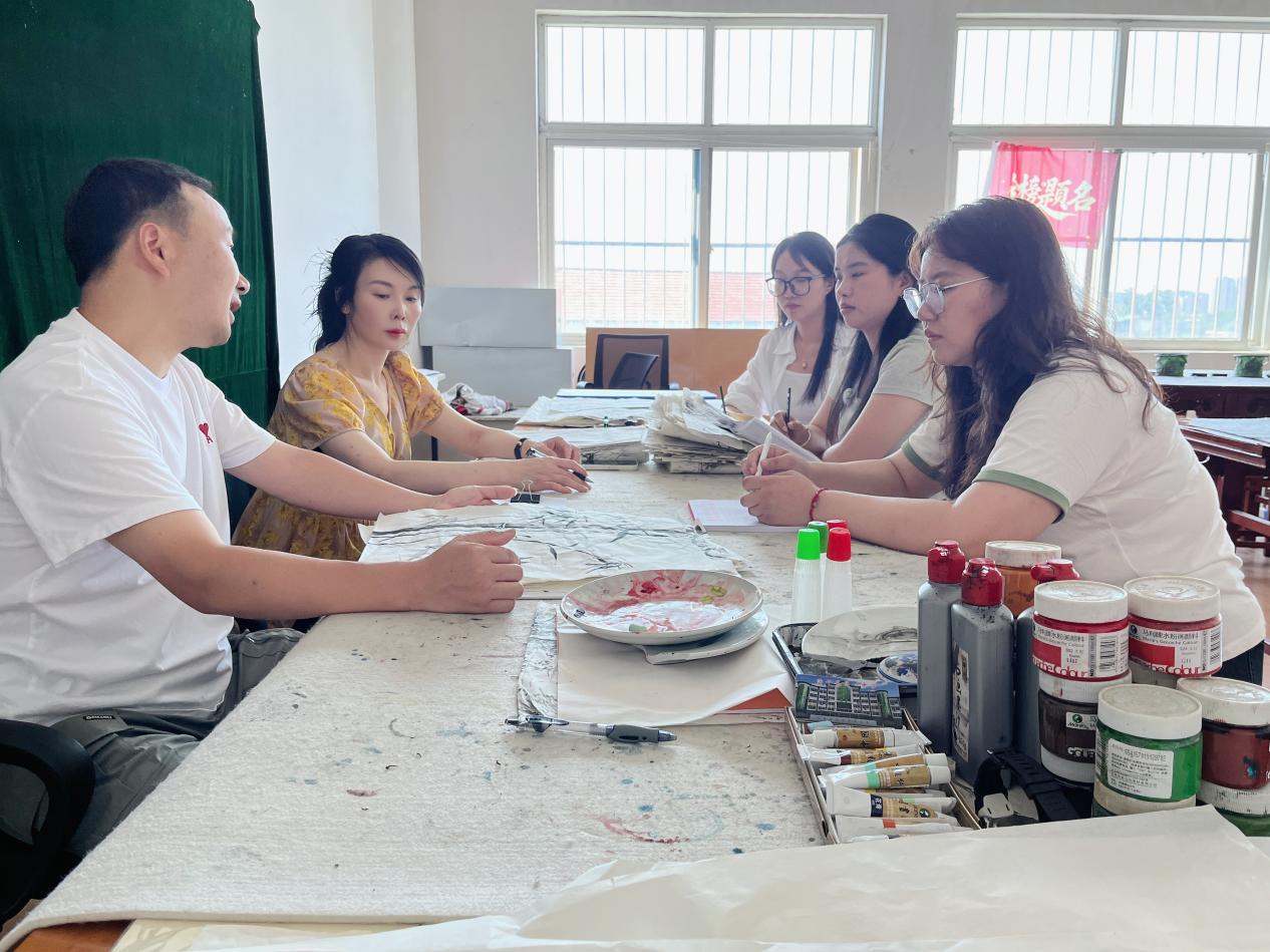5月23日上午,樊红梅老师来到黄冈西湖中学,听取了研究生张姣娟的论文实践课《像与不像-中国绘画造型观念的选择》,课后与实习指导老师吴君就如何开展论文课题的实践研究做了深入探讨。