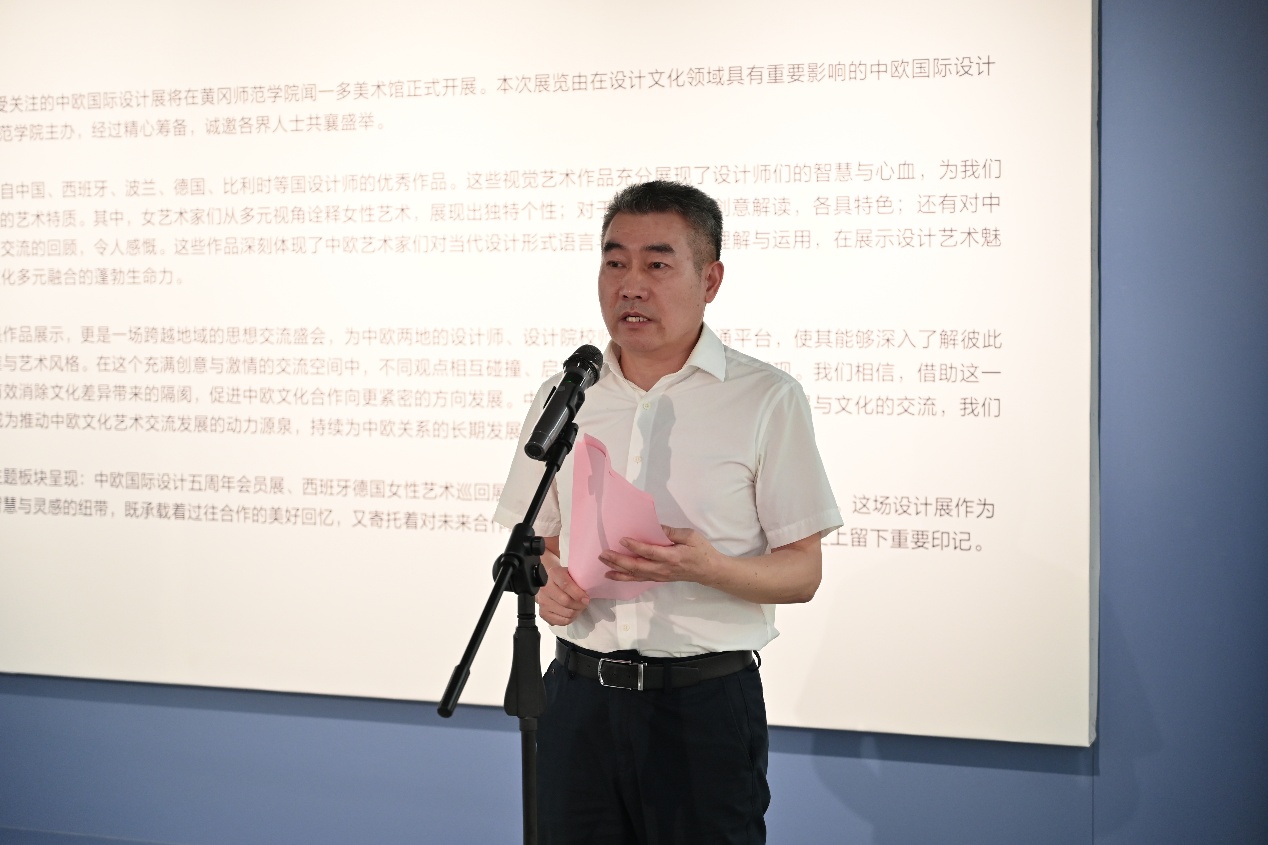 刘福臣教授代表国内兄弟院校致辞。他指出,设计作为文化的视觉载体,既是技术与艺术的融合,更是文明对话的桥梁。在全球化语境下,中欧设计文化的交流与碰撞,早已超越了形式层面的借鉴,而成为文明互鉴的重要实践。他期待以本次展览为契机,推动更多国内院校与中欧国际设计文化协会展开深度合作,让设计教育在跨文化的滋养中焕发新的生机。