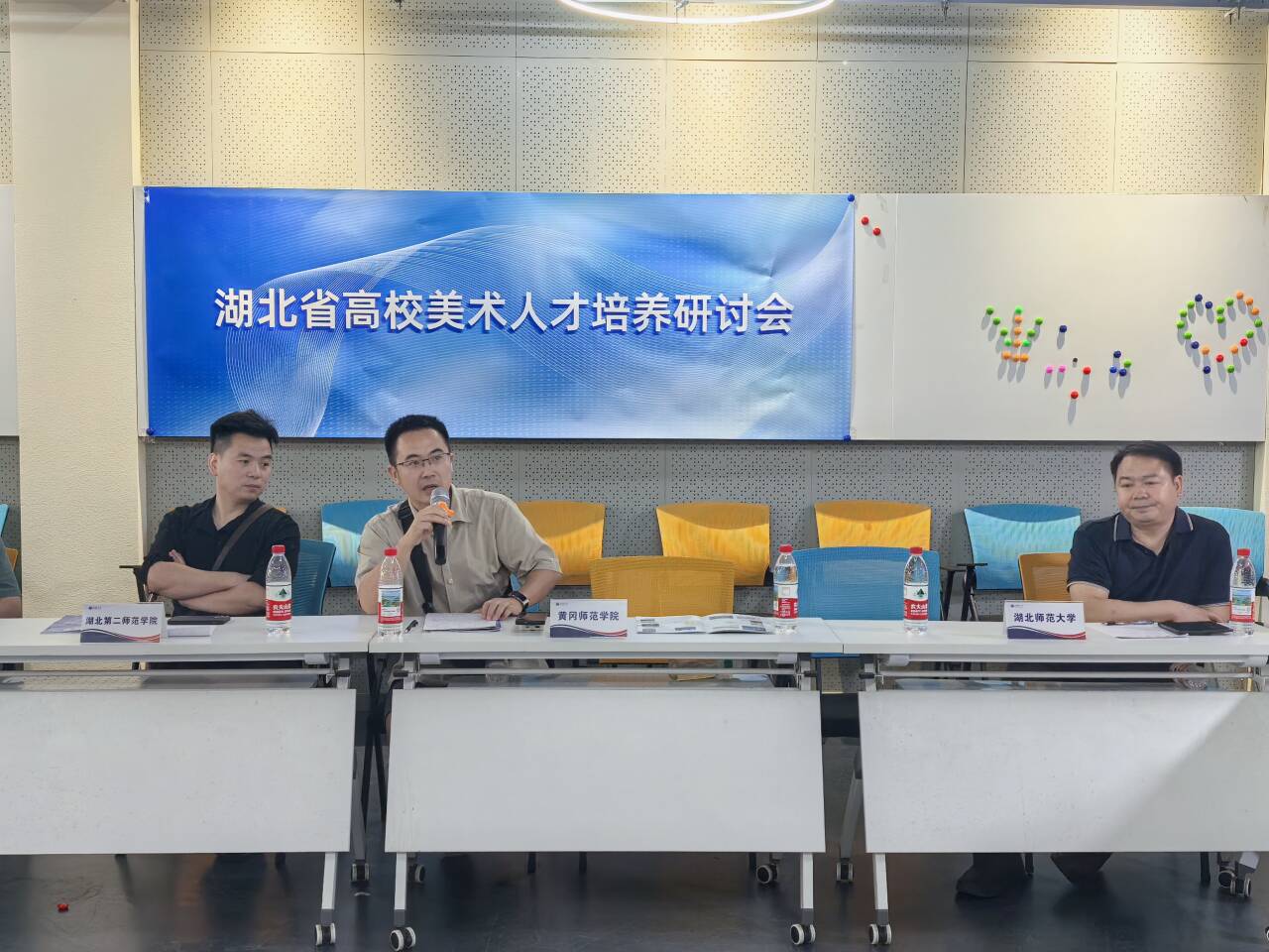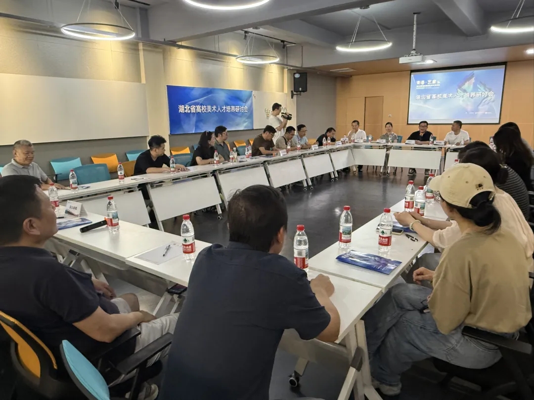 在随后举行的湖北省高校美术人才培养研讨会上,朱君主任结合办学实践,就新时代高校美术人才的培养模式、创新路径等话题与省内高校的专家学者进行了深入交流,并分享了公司在强化实践教学、激发员工创作活力等方面的经验与探索,为推动高校美术教育的协同发展贡献了智慧与力量。