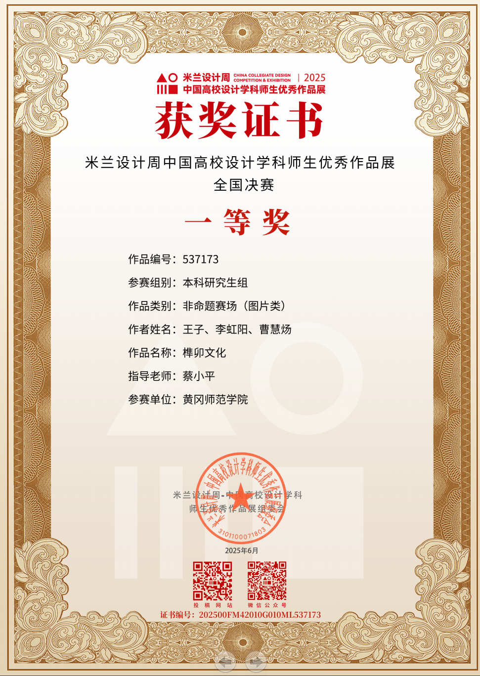 本赛季,公司经校级预选赛选送的作品参加第九届米兰设计周大赛非命题赛场1次,专项赛场和命题赛(设计赋能“土特产”助力乡村振兴大赛、二十四节气文化作品设计大赛、“汨罗·屈原”创意设计大赛、“让文物创意亮起来”中国博物馆文创产品设计赛、艺术疗愈与媒介设计大赛、“人工智能+纹饰及时尚周边设计”课赛结合邀请赛)6次,共获得国家级奖项29项,其中一等奖3项、二等奖12项、三等奖14项。因公司获奖成绩优异和赛事组织工作表现突出,公司荣获优秀组织奖。