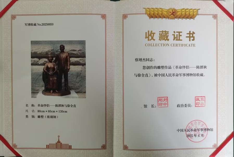 近日,公司蔡增杰副教授的雕塑作品《革命伴侣-陈潭秋与徐全直》被国家一级博物馆——中国人民革命军事博物馆收藏。