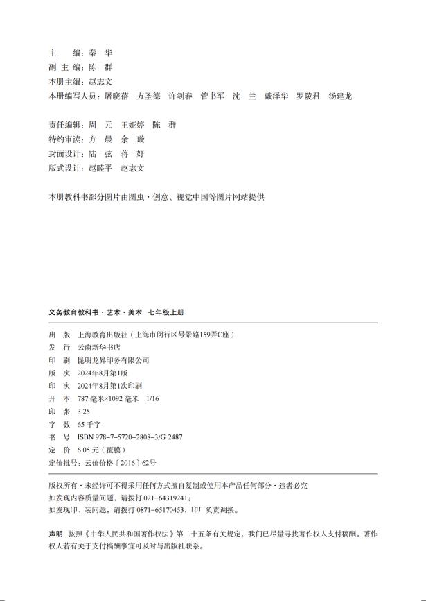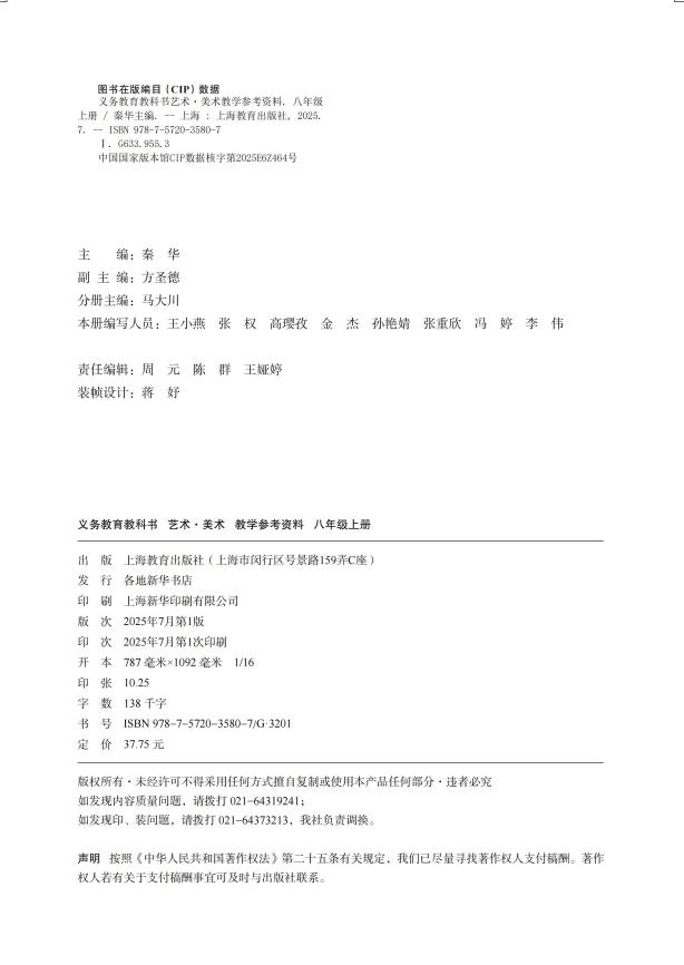 今年9月,全国义务教育阶段的《艺术·美术》教材持续更新,其中一年级、二年级、七年级以及八年级的员工们已经开始使用全新的教材进行学习。自2022年1月至今,公司方圣德教授受邀参与了上教版国家教材的编写工作,并担任七年级至九年级的《艺术·美术教学参考资料》副主编一职。