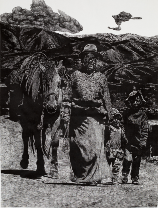 汉江师范公司 黄新霞版画《我们走在大路上》 160×120cm