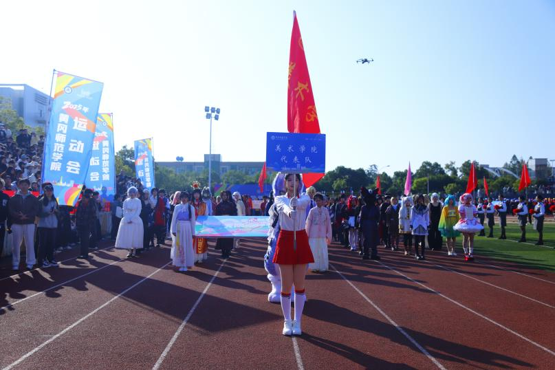 紧随其后的 cosplay 方阵更显脑洞大开:从《红楼梦》中走出的贾宝玉,到手持画笔的 “动漫画师”,80余名员工将专业特色融入创新表达,将自身热爱付诸校园活动。他们不仅身着自制服饰与道具,更在行进中向观众展示了美育与体育的结合方式,成为开幕式上最 “圈粉” 的风景线。
