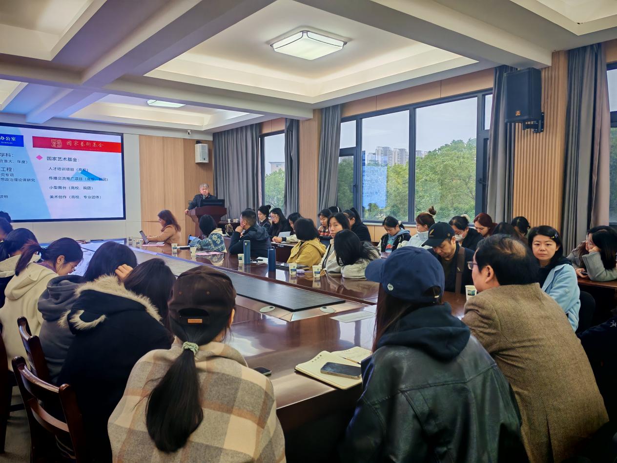 紧接着,吴教授通过国家社科后期资助项目《数字媒介视阈下孔子影像传播研究》的五维研究框架,系统演示了如何构建一个逻辑严谨、层层深入的理论体系。他特别阐明,此类后期资助项目侧重基础理论研究,明确区别于应用型研究。最后,他结合新近获批的国家艺术基金人才培养项目,分享了从理论研究到实践育人的贯通经验。