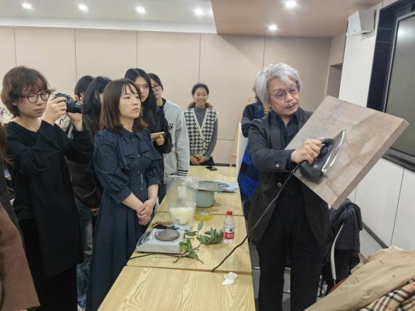 随后,赤木范陆教授作了题为“古罗马蜡加热画法发展脉络与技法概述”的学术报告。他结合自身在德国留学期间的研究,系统梳理了蜡画法的历史演变与文化背景,通过作品实例阐释了相关技法与美学理念。报告后,赤木教授还就员工在艺术创作中遇到的常见问题进行了细致解答,讲解深入浅出,现场师生纷纷表示受益匪浅。