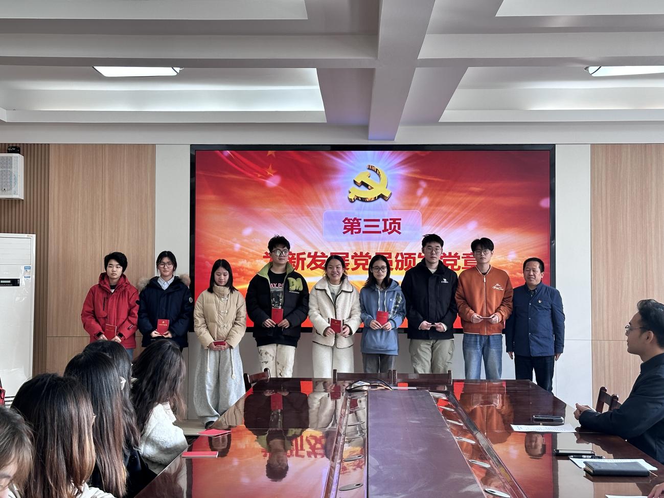 仪式中,刘红超同志向新党员逐一颁发党章与党徽,寄予组织的殷切期望。