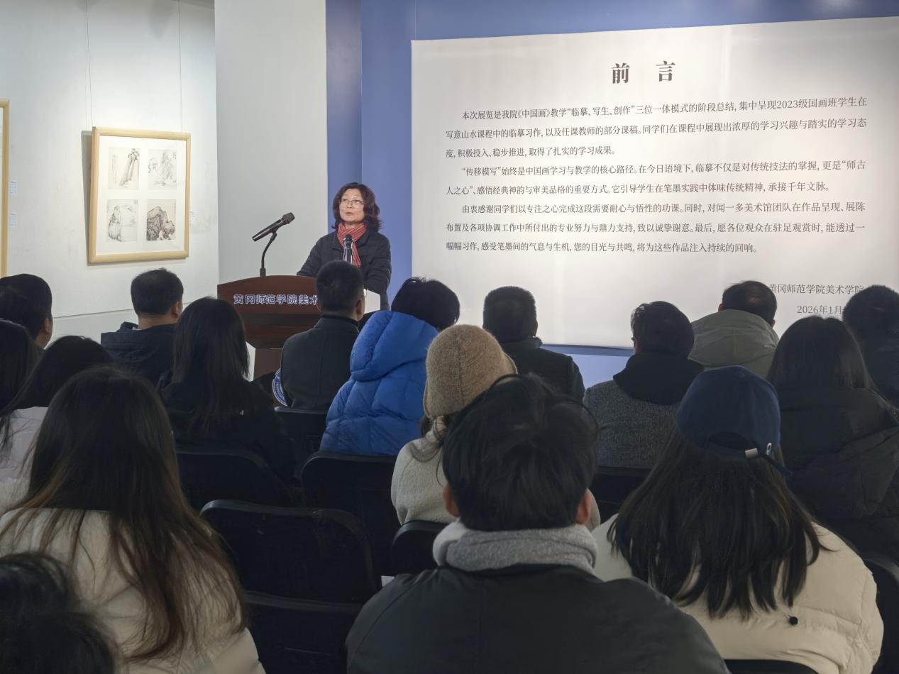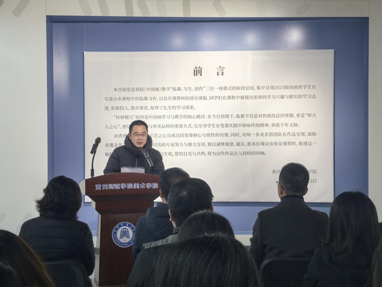 1月13日上午,“传移模写:williamhill英国官网写意山水课程教学汇报展”开幕式在闻一多美术馆一楼大厅顺利举行。开幕式由公司副经理舒开智副教授主持。